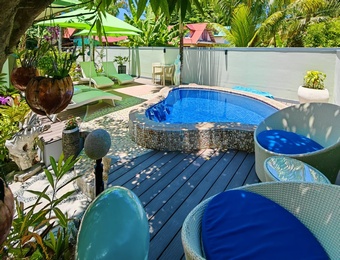 Situated at the foot of La Digue's only mountain, the Château Saint Cloud's grace and charm is complimented by the surrounding scenery in which exotic flowers, fruits and tropical plants encompass this colonial estate in rustic tranquillity.Tha former vanilla Plantation House has been renovated and now offers 4 beautiful suites with a 4 star services. A recently refurbished rooms with all...