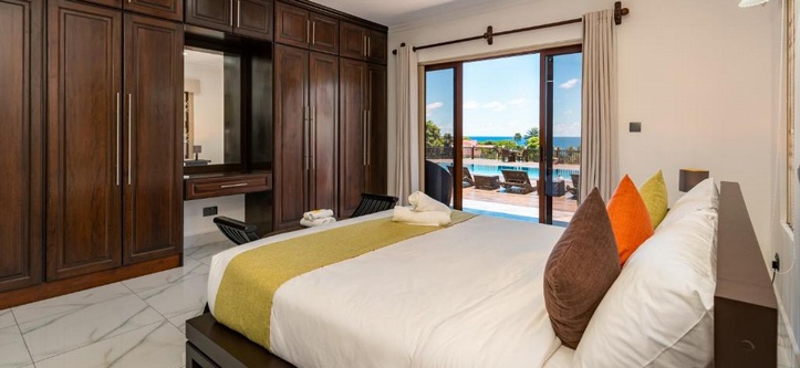 Features: Queen bedding in all bedrooms with en-suite bathroom, wardrobe, a fully-equipped kitchen with a fridge, stovetop, oven, toaster, kettle, microwave, safety deposit box, flat-screen TV, terrace, baby cot (FOC upon request), laundry facilities, small personal safe in each bedroom, bathroom amenities, pool towels as well as tea, coffee, milk, sugar and water bottles upon arrival.