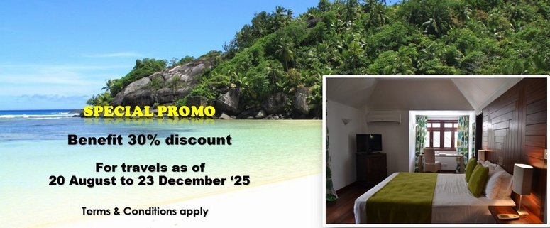 Here, a few minutes from Mahé, time stands still and nature reigns. A Garden of Eden, a lush tropical forest, pristine beaches and clear water, the Silhouette Island and the lodge offer you a lot of activities: excursion in the national park, meetings with the giant tortoise, playing Robinson Crusoe on desert beaches, diving in the water of the Marine Reserve to discover incredible species, fishing and enjoying the taste of your own catch for dinner!